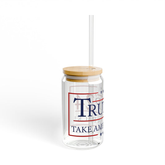 Trump 2024 Glass Cup 16oz. with Bamboo lid