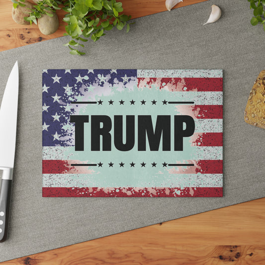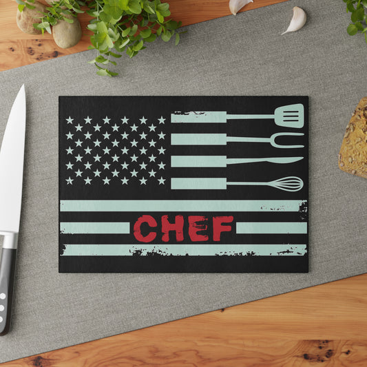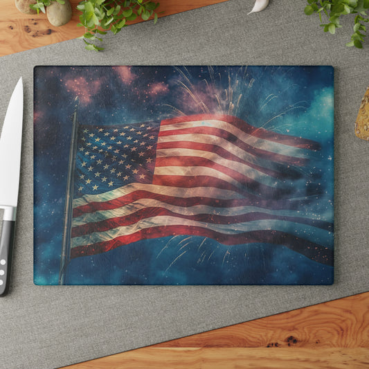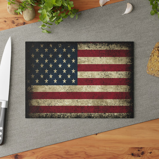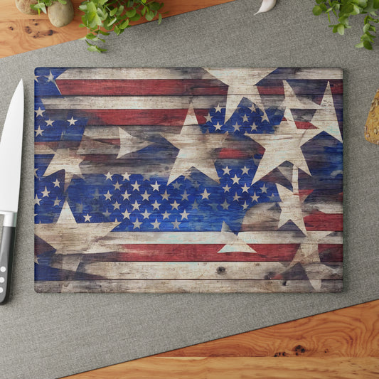 Weathered Wood American Flag Patriotic Glass Cutting Board