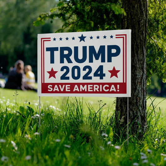 Show your support loud and proud with our Trump yard signs. Designed for durability and visibility, these signs are perfect for showcasing your patriotism. Whether you're rallying for Trump 2024 or standing up for American values, our bold and weather-resistant Trump yard signs make a statement